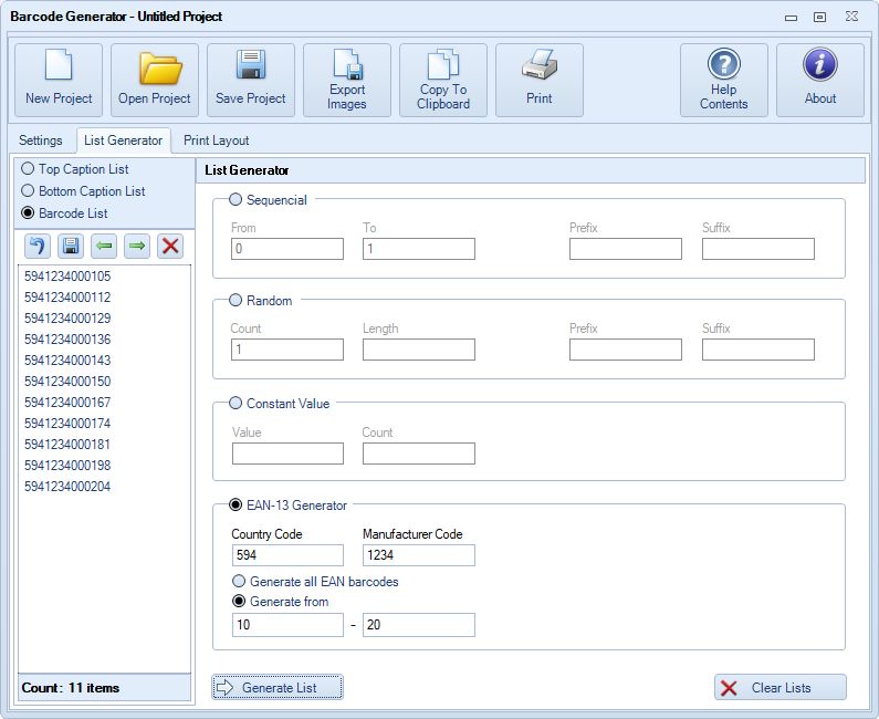 The generator produces barcodes in EAN, UPC, Code 128, Code 39, ITF, GS1-128, QR Code, DataMatrix, GTIN, SSCC and GS1 DataMatrix. It can generate single codes or large batches from Excel/CSV sources, with GS1-compliant structures and validation, bulk printing on rolls, sheets and card labels. For postal applications, USPS, British Royal Mail and Australian Post formats are supported. Output can be vector (EPS, PDF) or raster at any resolution, ready for pre-press or direct printing.